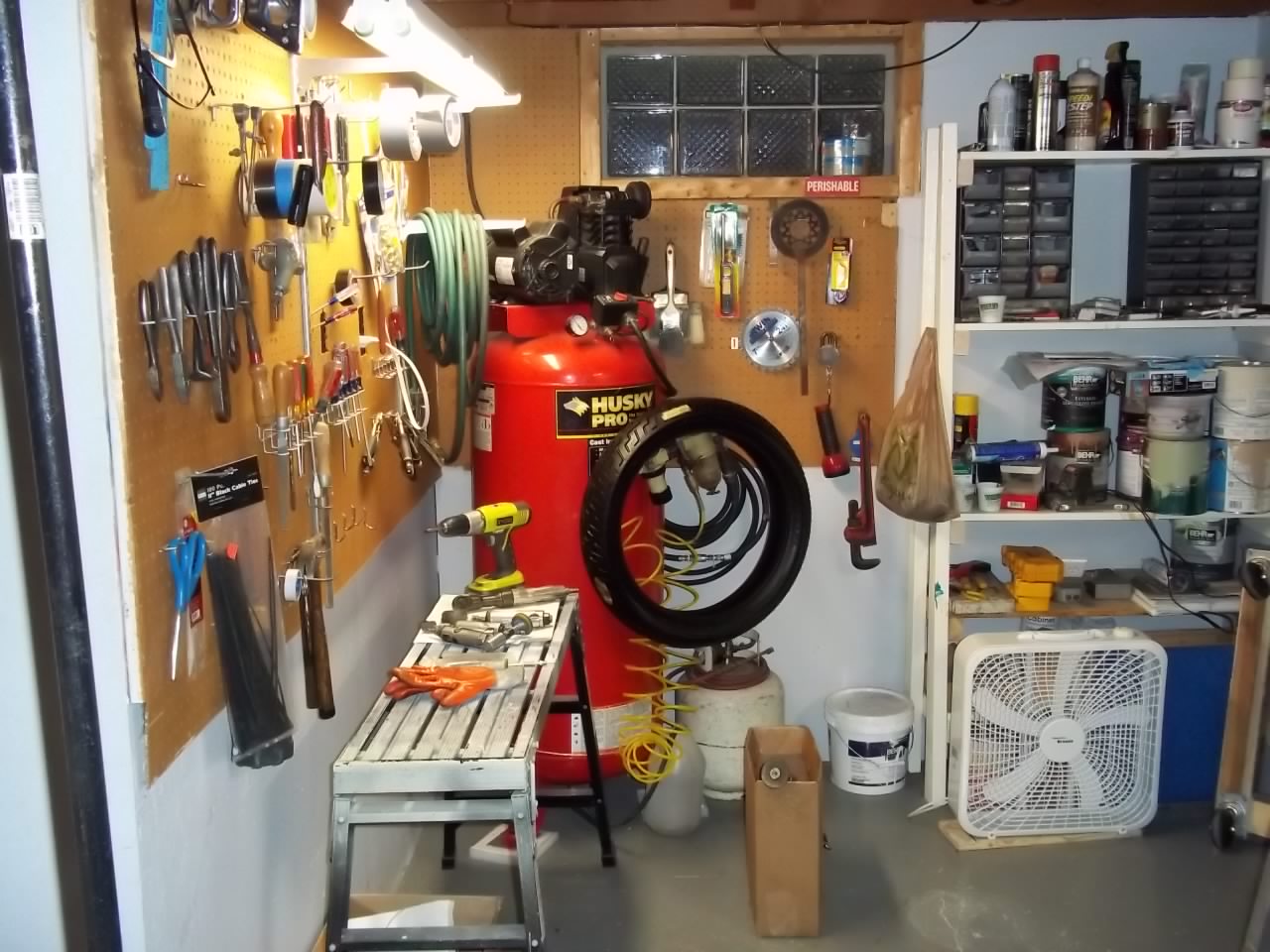 Nice compressor and nice setup! Looks like you can get a lot of painting done without it needing to kick in. Wish we had basements down here. It would be a much needed retreat for me. Am I right to assume you have air lines piped to the garage?