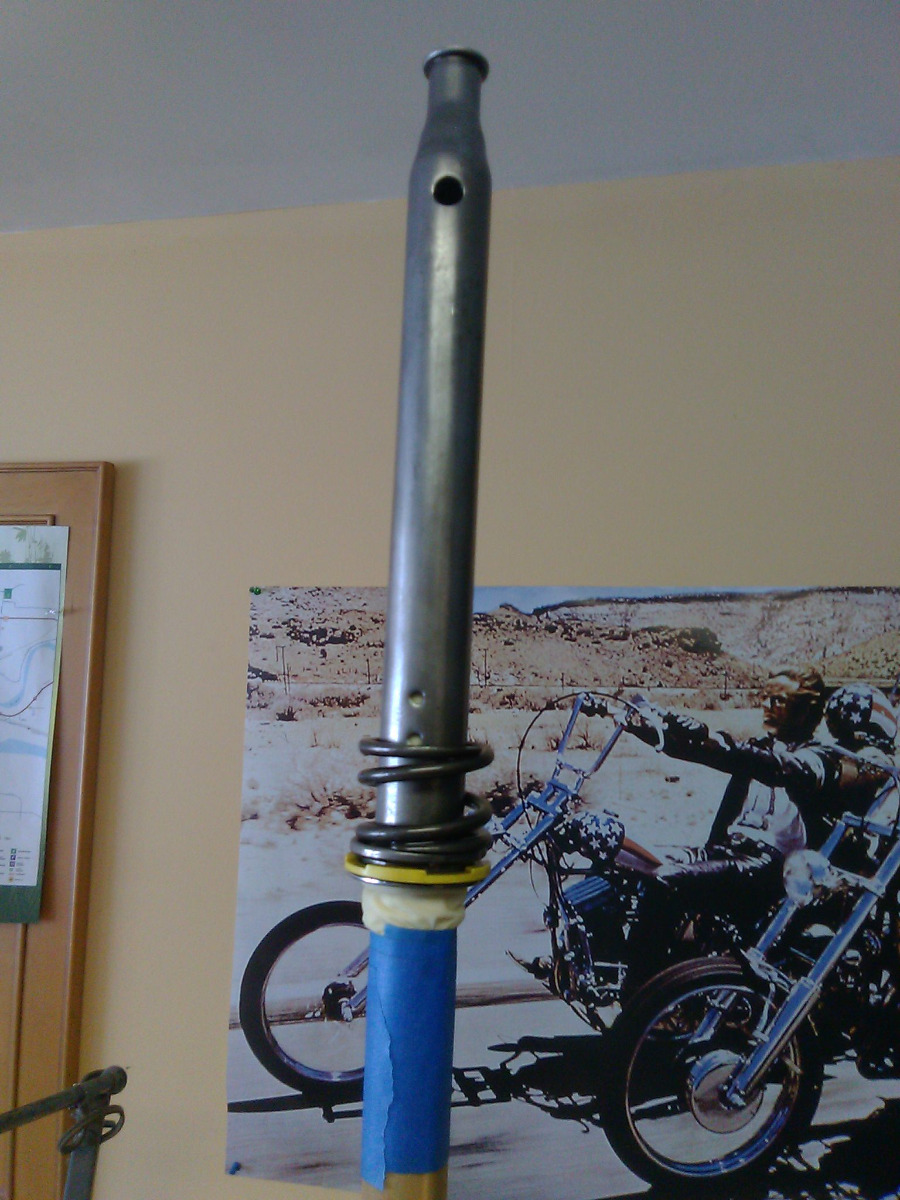 Well I can only assume there must be some confusion over what the Kawasaki tool #57001-176 actually did. In simple terms it was an oddball socket that Kawasaki designed with a female opening in it to accept a similarly oddball shaped fork damper cap. I still don't know how using a broomstick one is able to grab hold of a damper cap that has no indentation in it to accept anything what-so-ever other than a large Kawasaki designed odd shaped socket. I can only assume those that use the broomstick are lucky enough that sheer friction between the damper cap and broomstick is enough to break the bond of the bottom retaining bolt and the damper rod. The Race Tech rod will not work in this application.