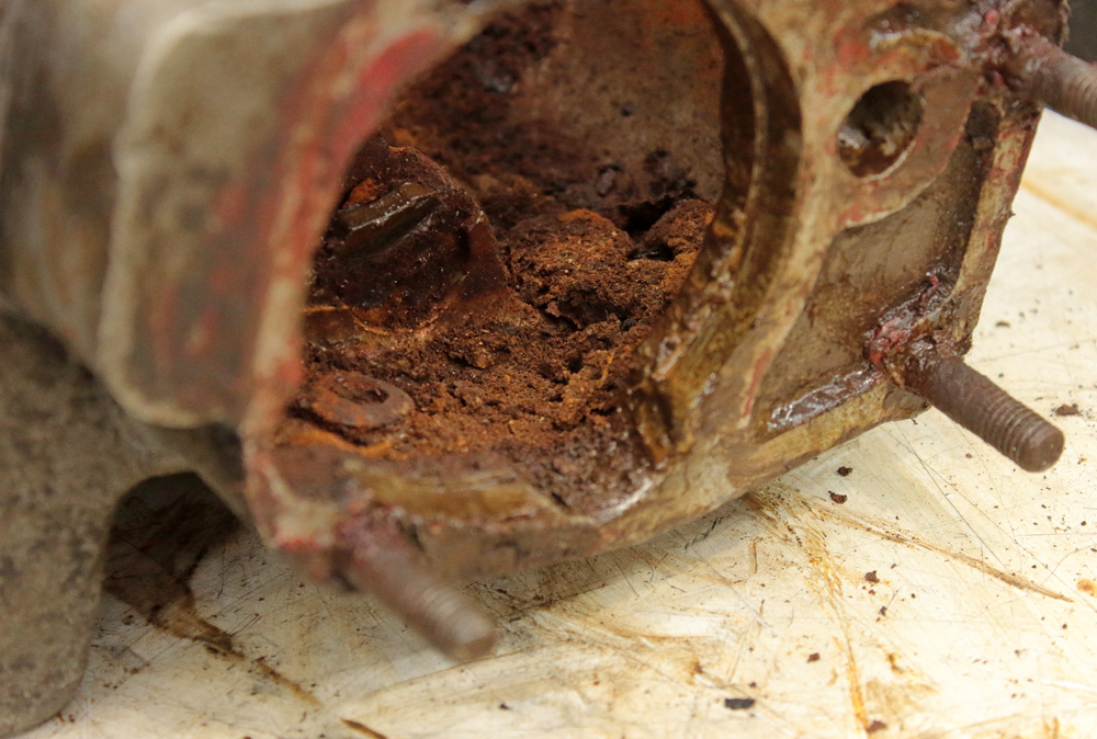 By the way: I wrote the answer about that knife while I had a brief break in my work. It so happened that today I started dismantling one of the spare engines for my client' 1950 BMW R35. I was particularly interested in a gearbox that was attached to the engine, because it is equipped with a hand operated gear switch lever. It seems that the engine along with the gearbox was used to propel not the motorcycle, but some household machinery and then was abandoned for a long time as all their exterior steel parts became heavily rusted. I managed to separate the gearbox and engine and I disassembled the gearbox. Alas, not much of parts could be used in the project.