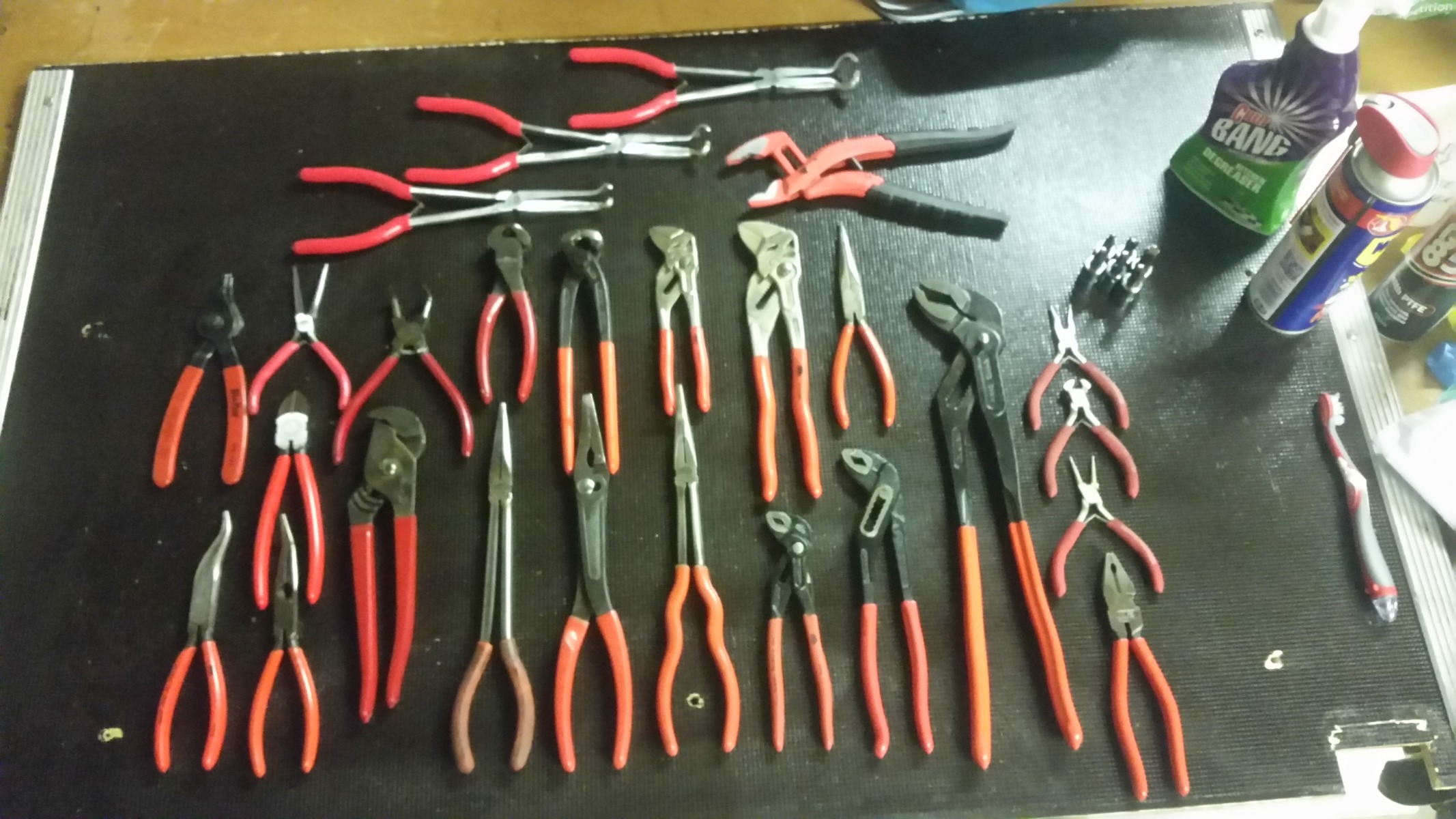 Just a quick update...I spent a while earlier organizing and cleaning up some tools and here's my knipex, mac and rothenberger plier grip and wrench collection so far oh and one set of blue point snap ring pliers