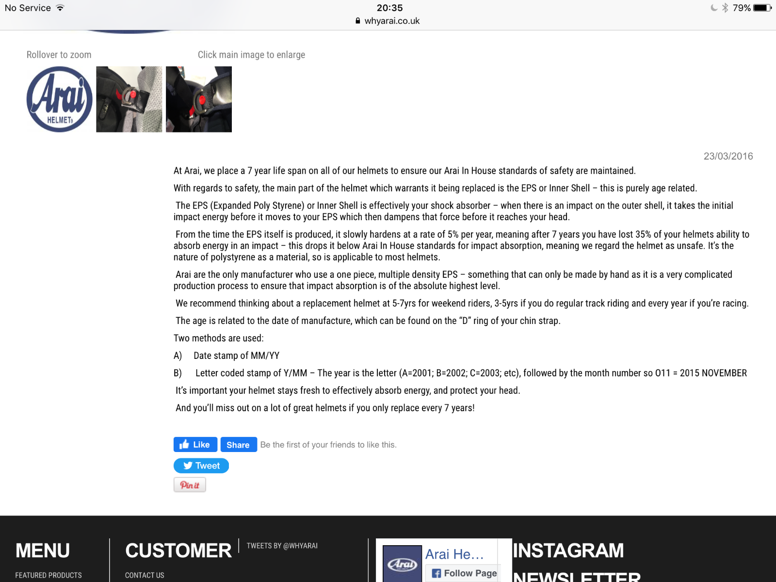 As I said, the choice is yours to decide on the risk level you are comfortable with. However I think the below from Arai is interesting with regards the invisible degradation that effects the "impact absorption" properties (the cynics could say it's a sales ploy !!). Ultimately you "pays your money and takes your choice"