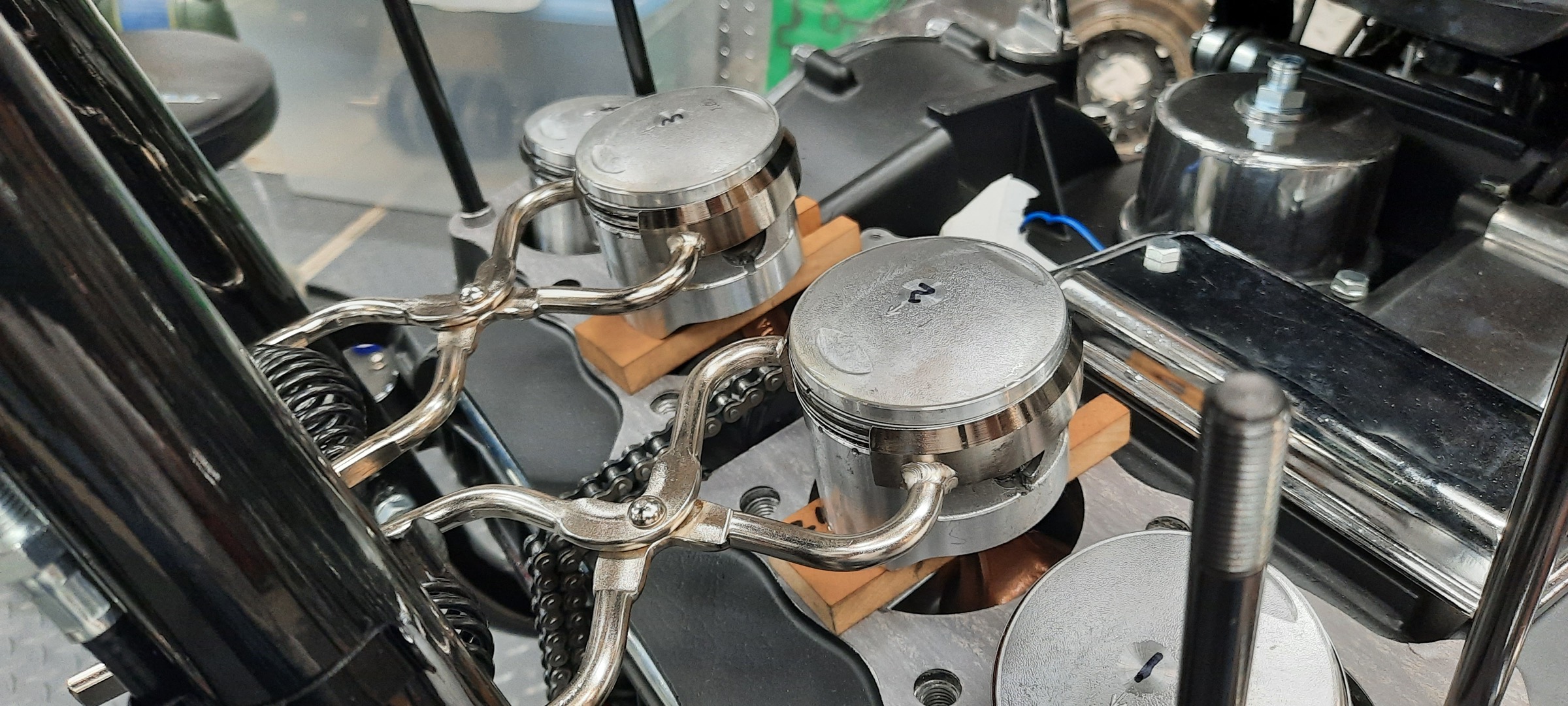23 May 2023 20:40I like these Honda Ring compressors for the CB450 and The piston blocks are 1/2 inch MDF with correct cutout for the rod and long enough to support the piston.