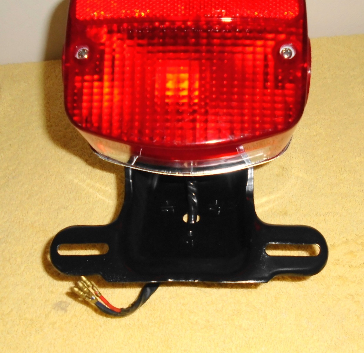 And here is tonight's episode! The batch of parts I recently acquired. Had this nice tail light!. Like New for 45 years old!! I cleaned it, polished the lens and painted the housing. I have been using the Dupli-Color caliper paint with ceramic, nice satin. I am going to re coat it and bake in oven on low. I just put it together for some pictures.
