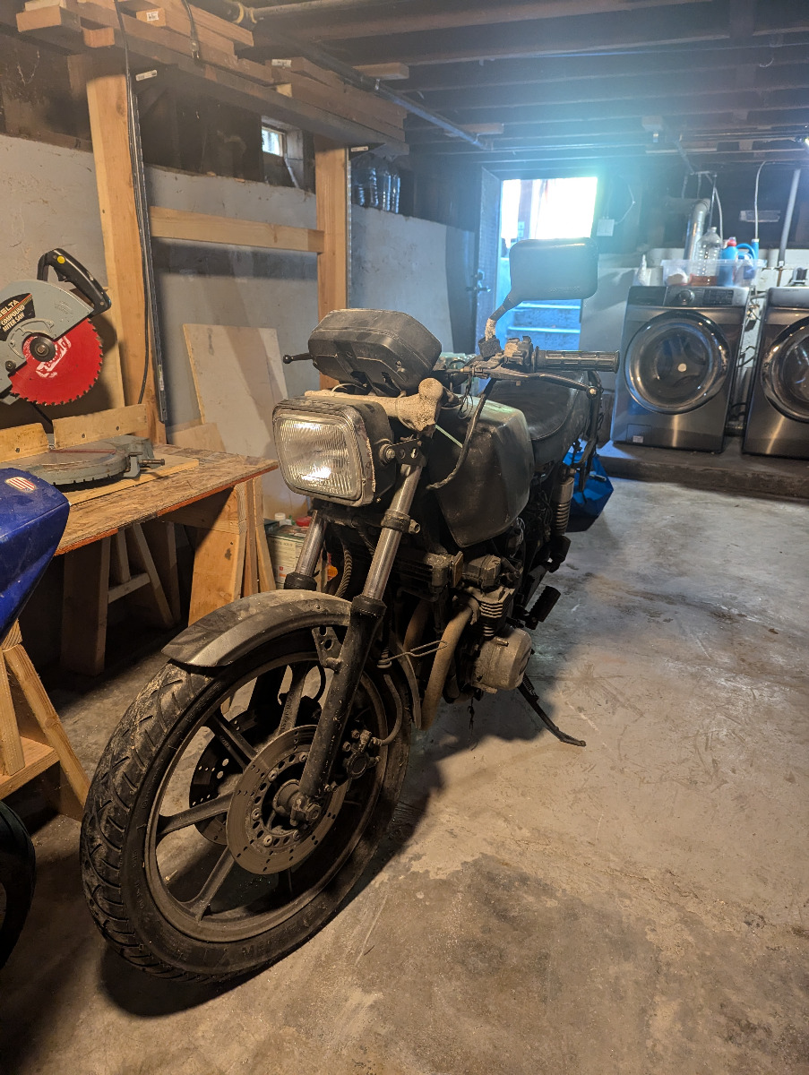 This bike is NOT in riding condition. I haven't gotten it to turn over more than a couple times in the last few years. It's gonna need some love.
