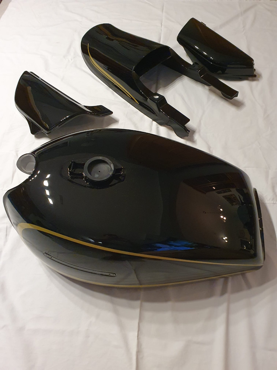 Hello everyone, Like I said in my introductory post, I have a few parts to sell: 1x Doremi Paint set (tank, side panels, ducktail) in KZ1000A2 Black Design (Brand new in Package) - 1250€ plus shipping