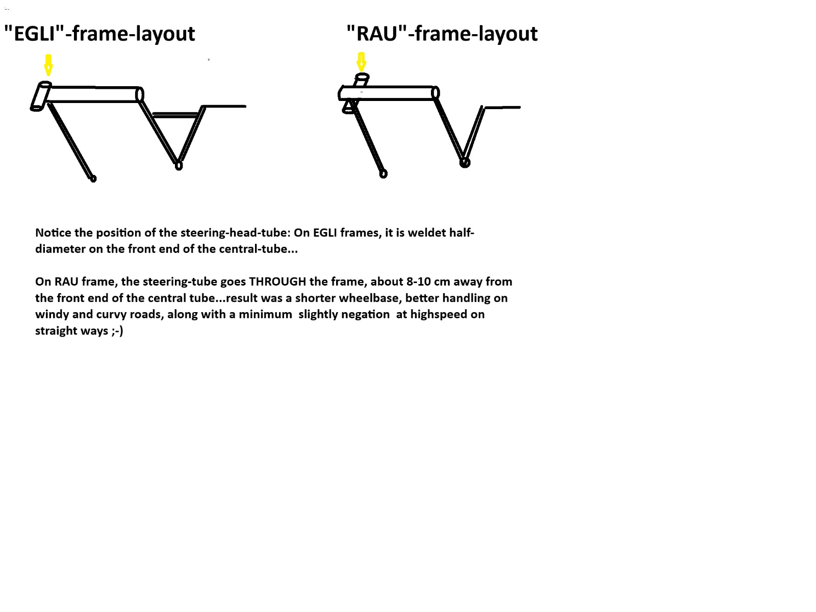 To explain: The RAU-frame was an nearly copy to the EGLI frame, nearly same style and layout, twinshocker design, but with a shorter wheelbase, depending on position of the steeringhead...