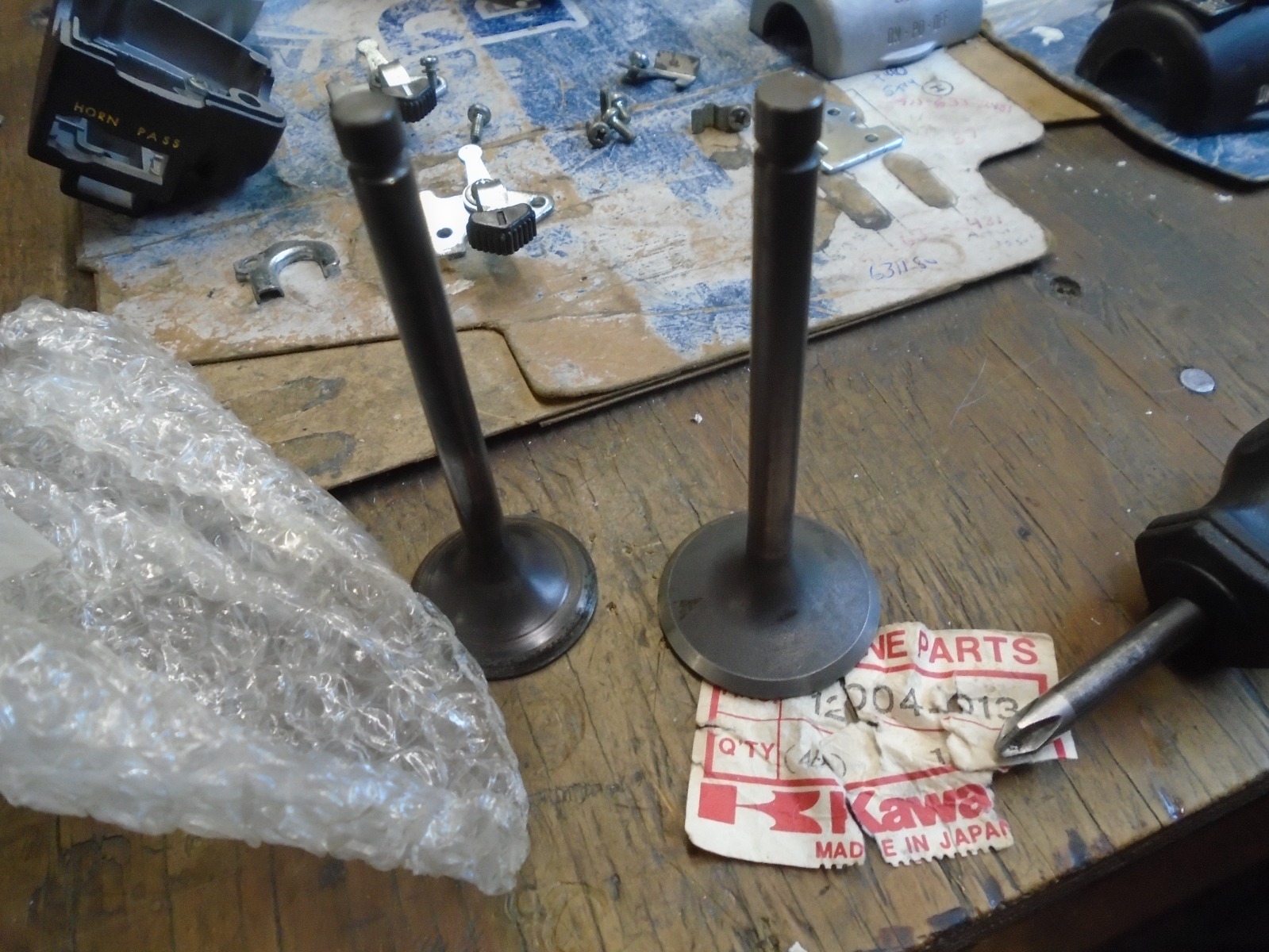 Kawasaki part numbers are Intake 12004-1013, Exhaust 12005-1011. And never faced exhaust valve with minimal wear and good margin on tulip.