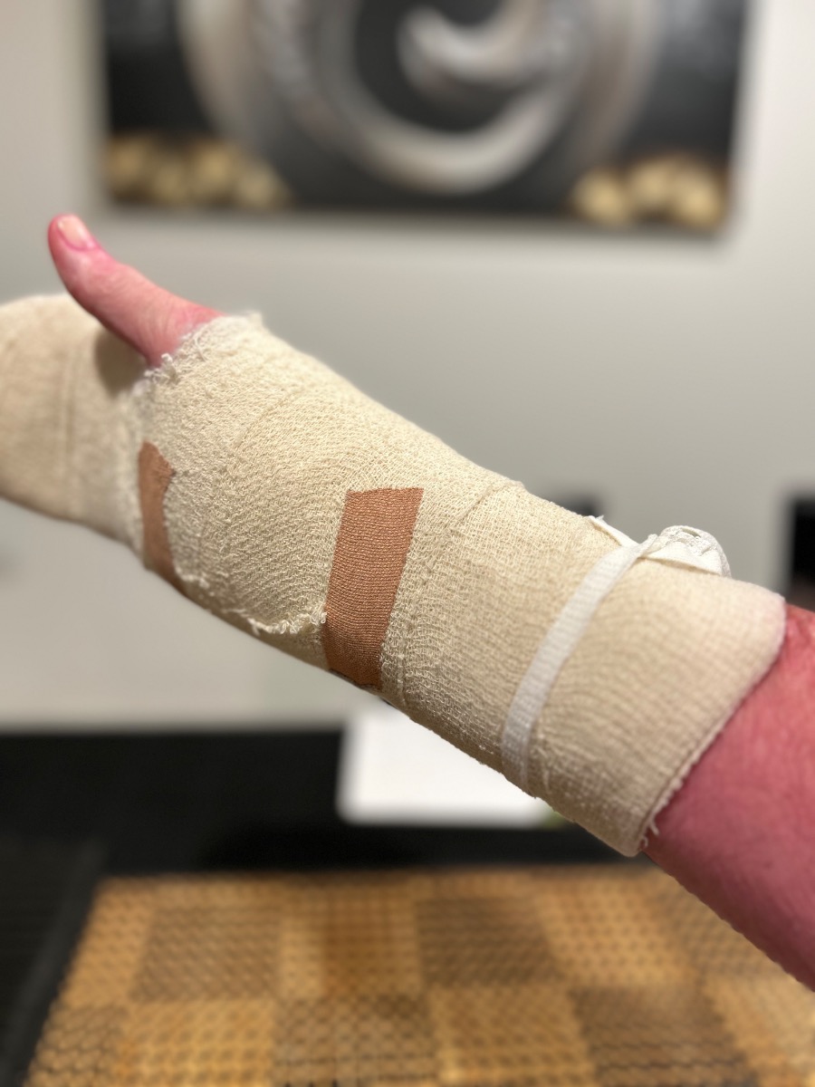 Hi guys, yes totally worn it out ha ha, I will be in this (photo) for a couple of weeks and then I hopefully get the stitches out