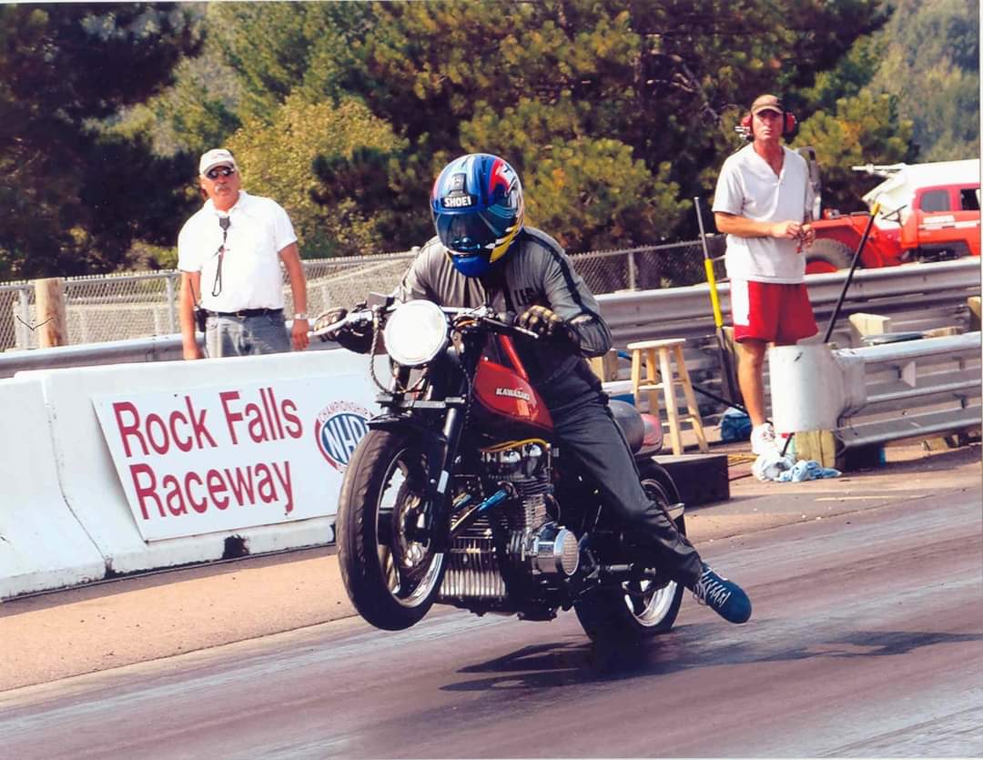 In a former life - KZ-based dragbike - CrMo car tire chassis, 1395cc, Hahn Racecraft turbo system, VP C16, Orient Express 3-spd auto, 7.80's @ 165-170.