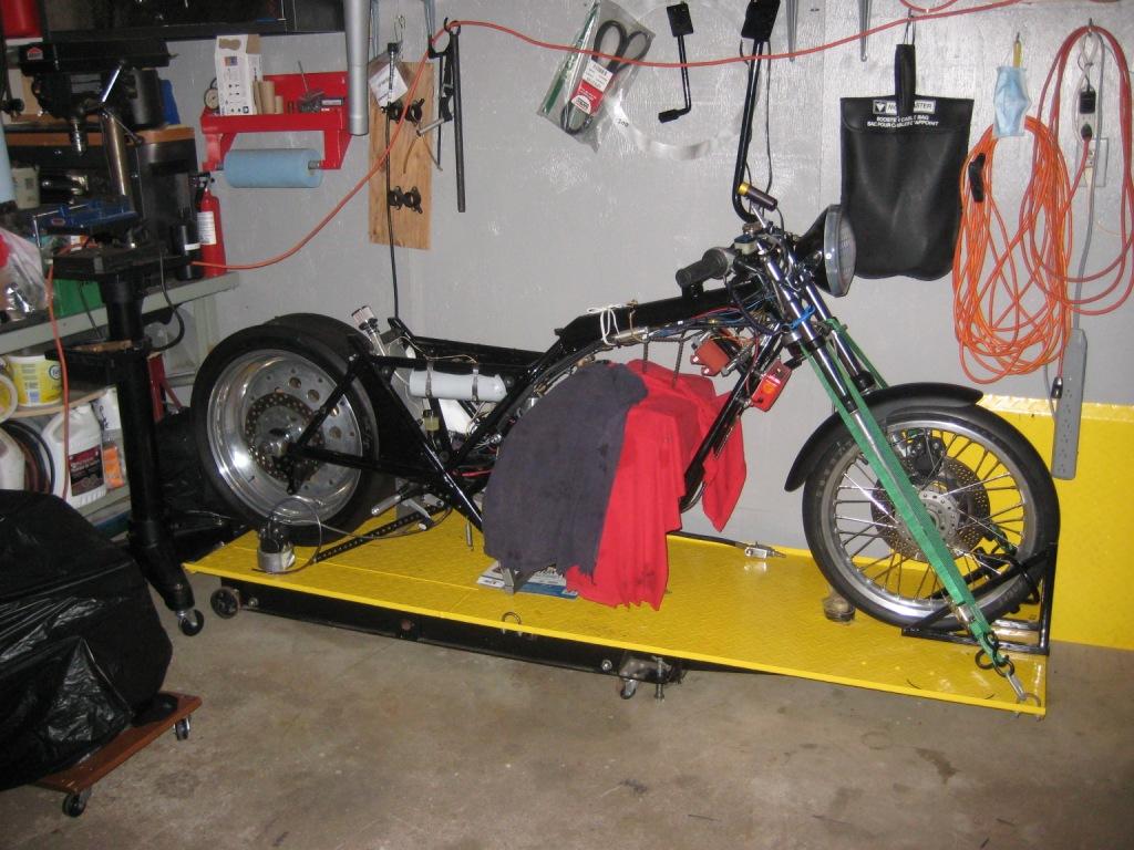 In a former life - KZ-based dragbike - CrMo car tire chassis, 1395cc, Hahn Racecraft turbo system, VP C16, Orient Express 3-spd auto, 7.80's @ 165-170.