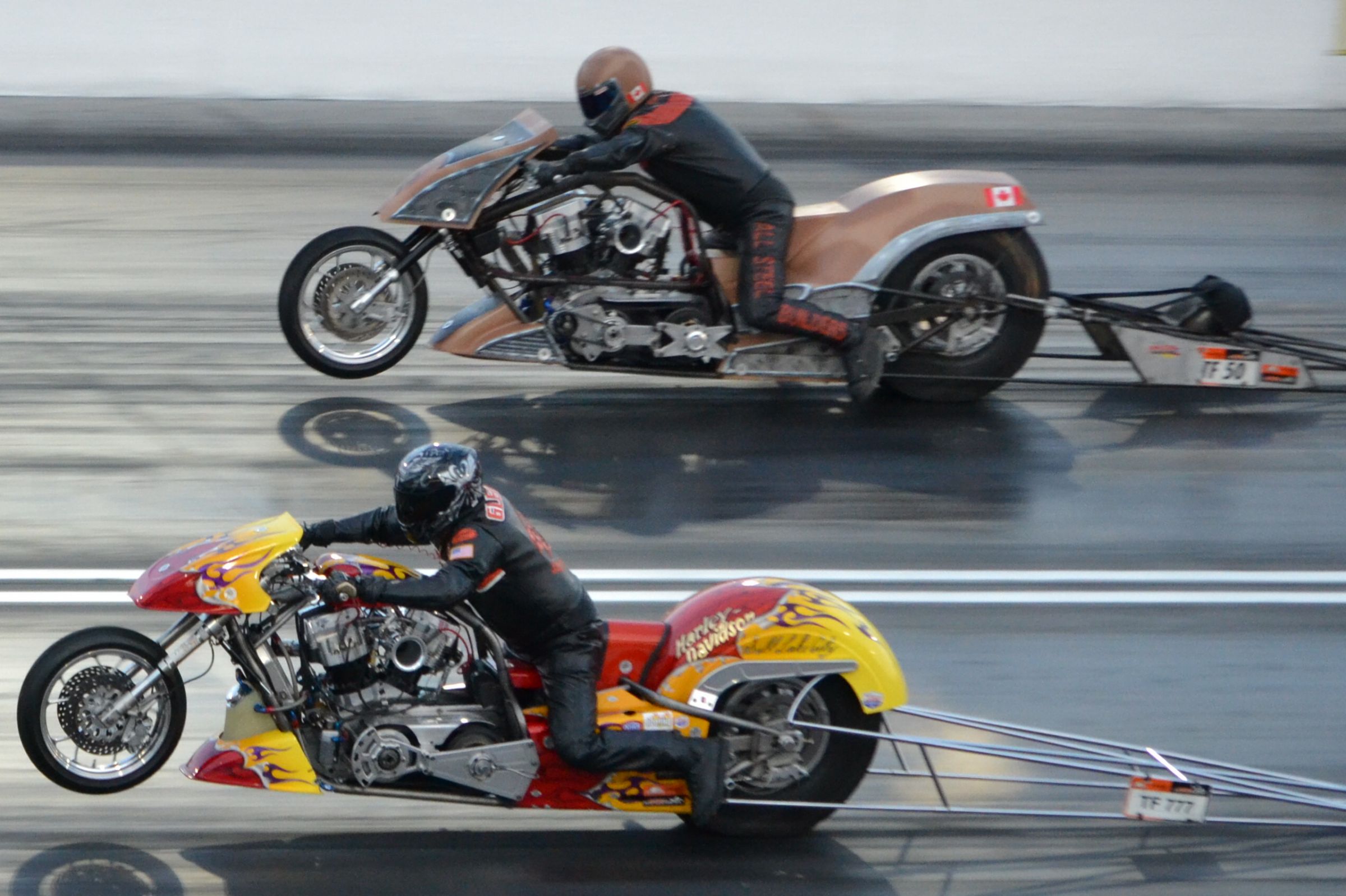 Thanks Mike! Finally! Someone who appreciates NITRO motorcycle racing! Harley's do rock all the sense's. All Nitro defie's the laws of physics! Sucks the air out of your lungs from the concussion for 5 seconds! Stands the hair on your neck! Vibrates your ear drums! Burns your eye balls!