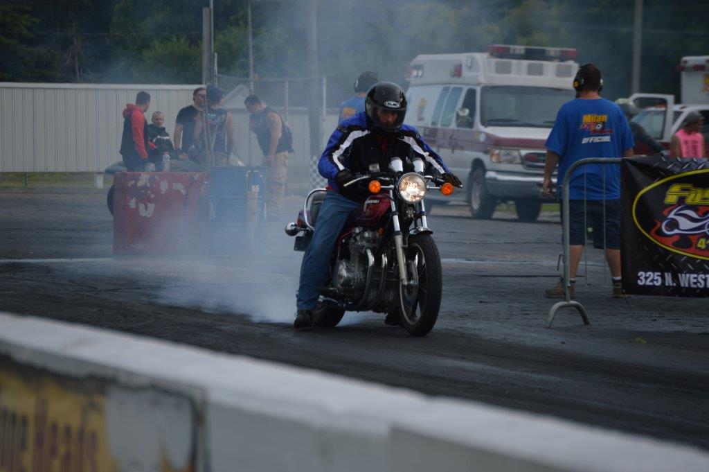 Yes, it's quite the rush to race like that. It's also a lot safer than I think many people realize (like my mom and sister). If you're going to get hurt at the strip then it most likely was your own fault. It's not going to be someone pulling out of a driveway, a deer, potholes, etc. If something does go wrong you at least have the EMT right there to scrape you off the track. I'd like to think it makes me a better rider. At the very least I am very competent at nice smokey burnouts and well you know.....how cool is that!