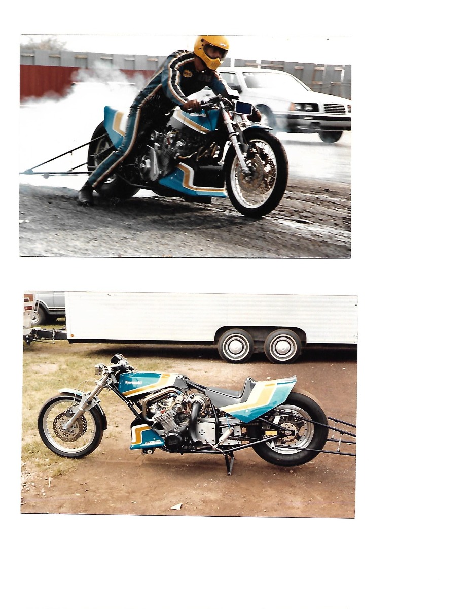 In a former life - KZ-based dragbike - CrMo car tire chassis, 1395cc, Hahn Racecraft turbo system, VP C16, Orient Express 3-spd auto, 7.80's @ 165-170.