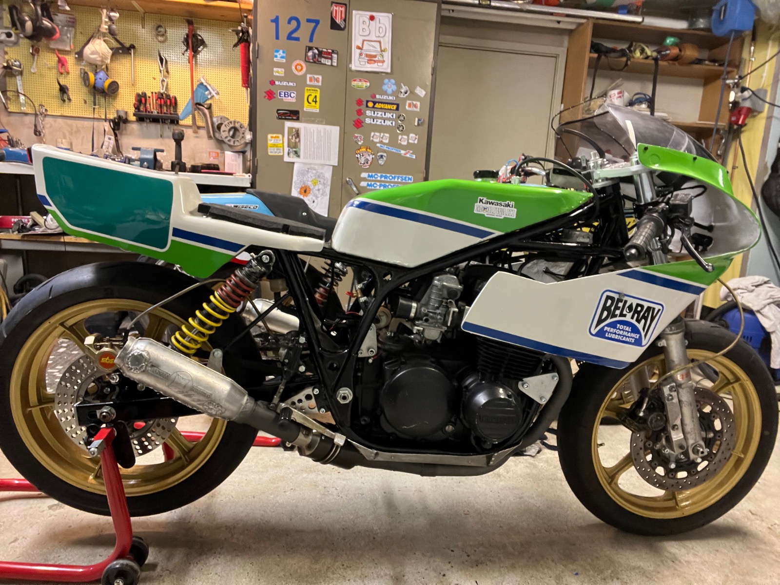 I sold the green 650 and I want to have at least one green bike so I painted it green instead of the Yellow/blue Moriwaki colors.
