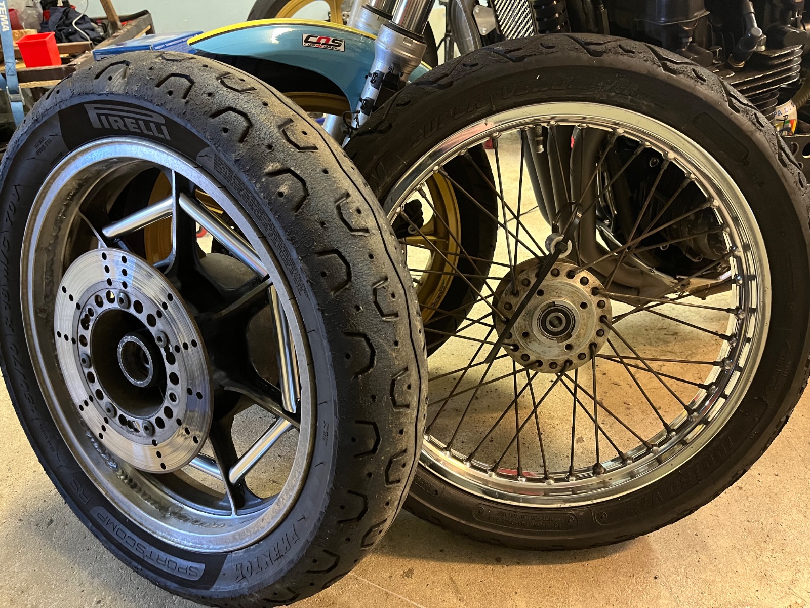I have a Z1 front wheel and an old Avon AM18 19” that was too soft for road racing.