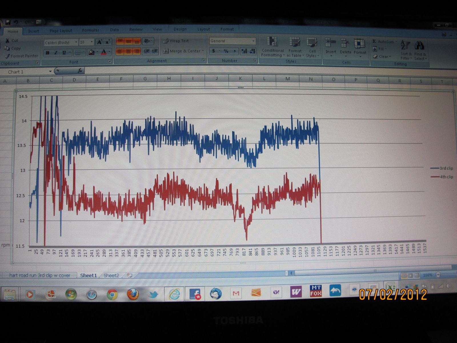 02 Jul 2012 14:30Well I'm not exactly sure but on my bike with vm26 carbs the needle clip position had a big impact I used a afr wideband o2 sensor fot he testing. The test was done @ 5k or approx 65 mph.