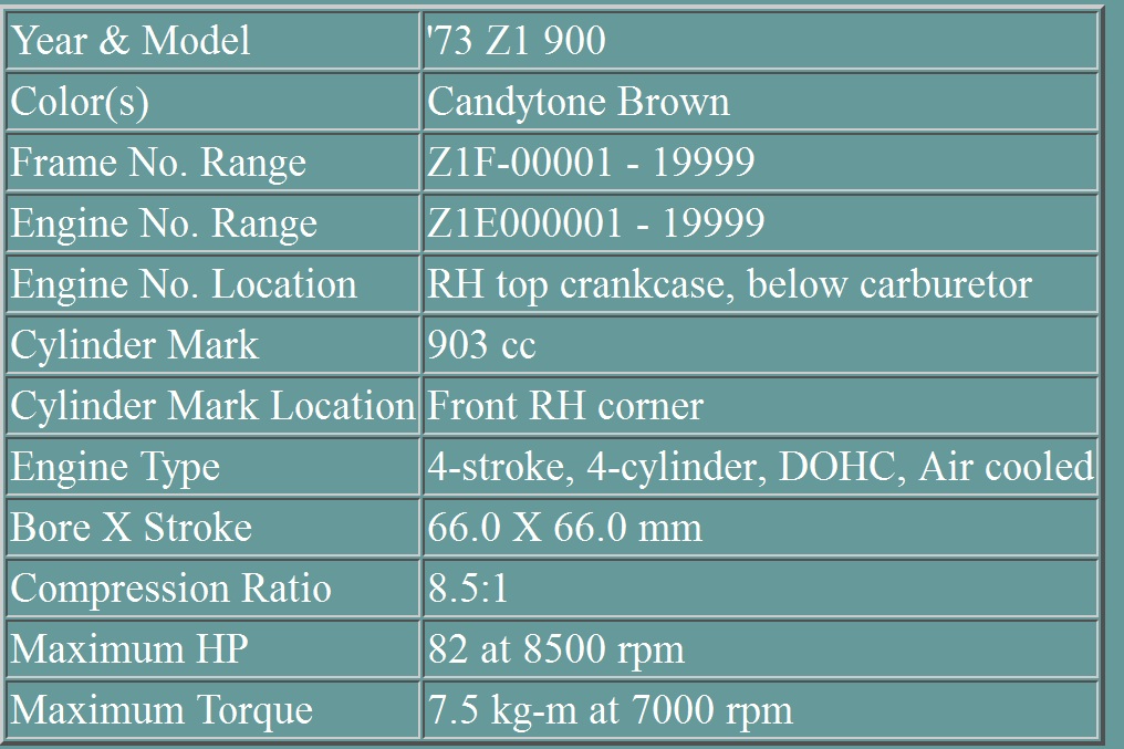 Z1 models are 1973, 1974 and 1975 (28 mm carbs).