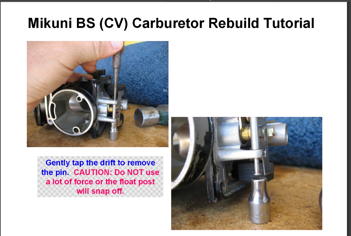 24 Nov 2013 10:59The_Raven wrote: Yeah, looking at that float pin extraction method. I was hoping not to have to un-rack the carbs and save myself a bench sync . . . .