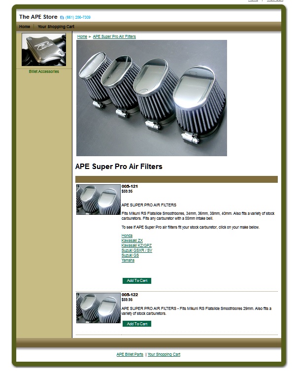 APE SUPER PRO AIR FILTERS - Fits Mikuni RS Flatslide Smoothbores 29mm. Also fits a variety of stock carburetors.