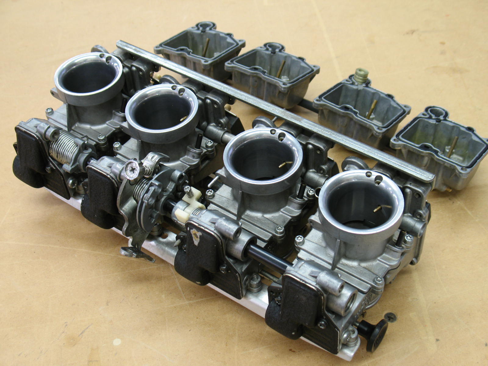 17 Nov 2016 11:49daveo wrote: The bowls are connected together with fuel hose at the bottom, through which the fuel is pumped to each carb nozzle.