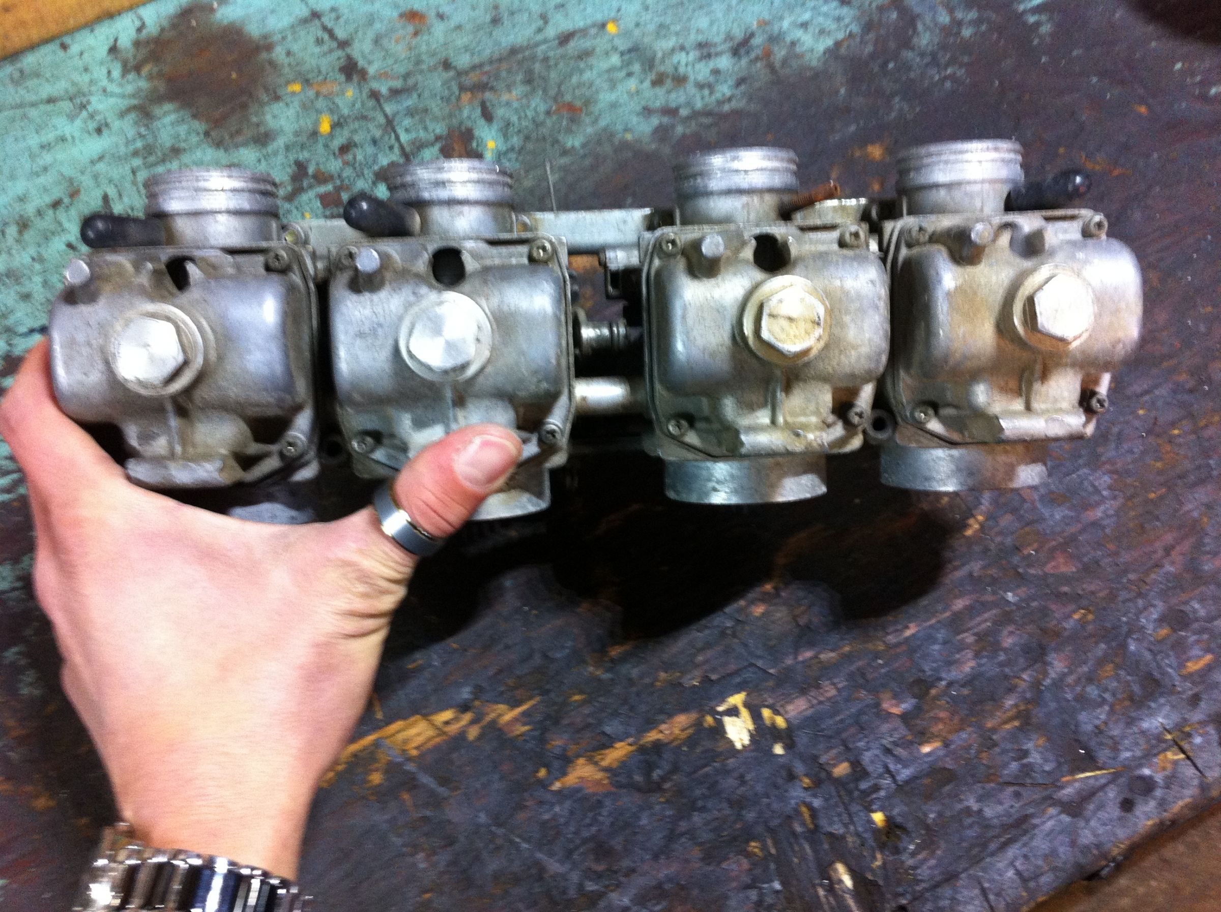 They've clearly been modified for vacuum ports by somebody, which among a couple other things suggested to me that they were maybe the VM33s, which as per earlier did not come with synching ports. I did check the bore diameter quickly at the fellows house, and I seem to remember it being a touch OVER 33mm, but not an awful lot. I currently have then soaking in some hot soapy water to clean them up at least a little before moving on.