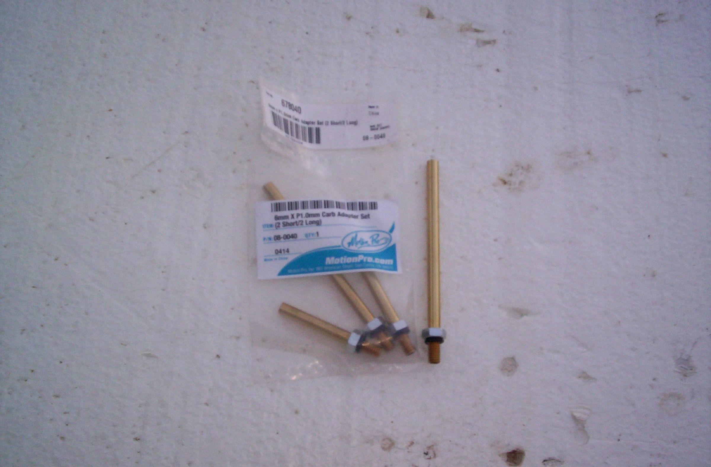 Got my new vacume port adapters (AKA nipples) yesterday. They're for Yamaha fours. Two long and two short. They will work for the two inside being they are long enough to get to easily. I need to get two set screws to plug the holes the PO munged in, drill and tap new ones at the 5:00 and 7:00 position respectively. Carbs will have to come off again and will JB weld them in When I'm ready, could have made my own but $10 delivered I can do other things like my new cush drive rubbers I just got. That will be done today. I've been wanting these things for years. One thing at a time. :whistle: