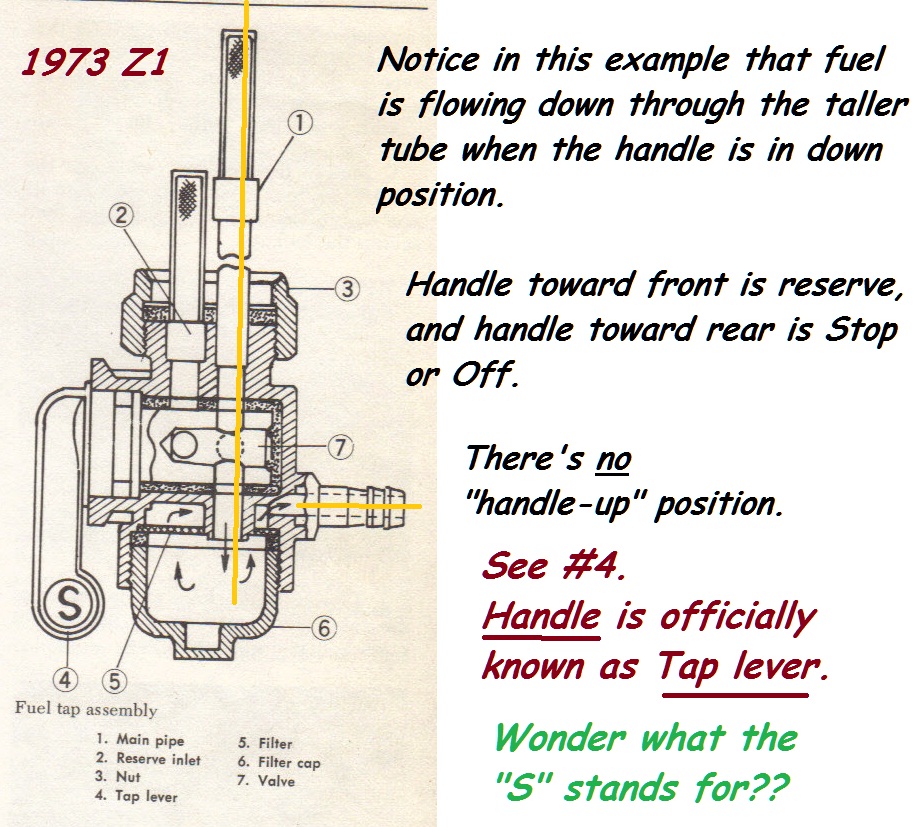 You're probably aware that the petcock depicted in the 1973 schematic drawing is the old-style original design that used a rubber sleeve over a hollow cylindrical "peg" that was the part of the tap lever that rotated inside the body of the petcock. Every old-style petcock we ever saw began leaking eventually because the rubber sleeve deteriorated, and we wer never able to find replacement sleeves. Honestly, looking at the original design we don't understand how they didn't leak when new.