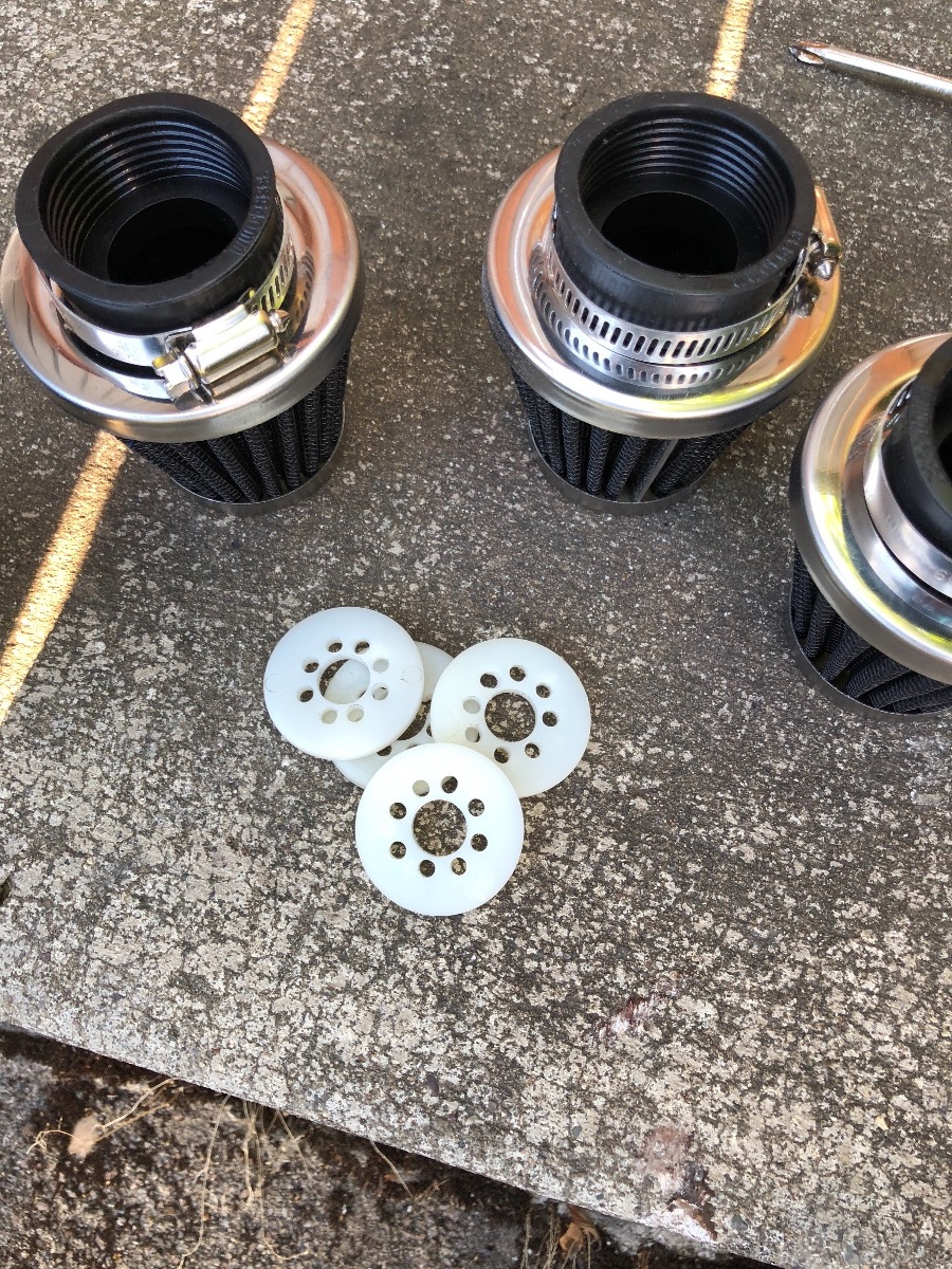 I know, just use the air box....Mine is shot, rubber boots are shot, pods are in hand, I’m going for it! Before I start rejetting I’ve decided to experiment with fabricating restrictor plates that fit in between the carb and the pod filter. I will be experimenting with different sized holes to see if this can be a cheap and available option instead of rejetting multiple times until it’s right. Ive Only seen mention of restrictor plates, no actual accounts of it working or anyone trying it for that matter.