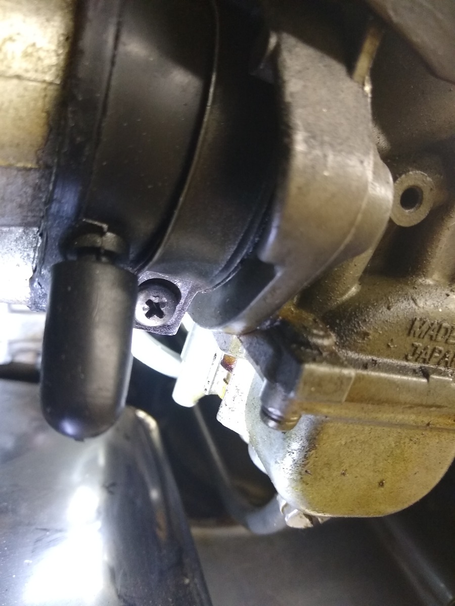 Steve here are the best pictures I can get on carburetors side,top & bottom view. Kinda hard on a old man , but I'm trying. I could only find one of the old plugs. The screws on bottom of carburetors didn't seem to be all alike not with my eye sight anyway. As we were talking earlier my mechanic that has retired unfournatley was talking about lower neddle one or two notches. Untill you told me about the screws on bottom of carburetors. I will try and include best pictures.