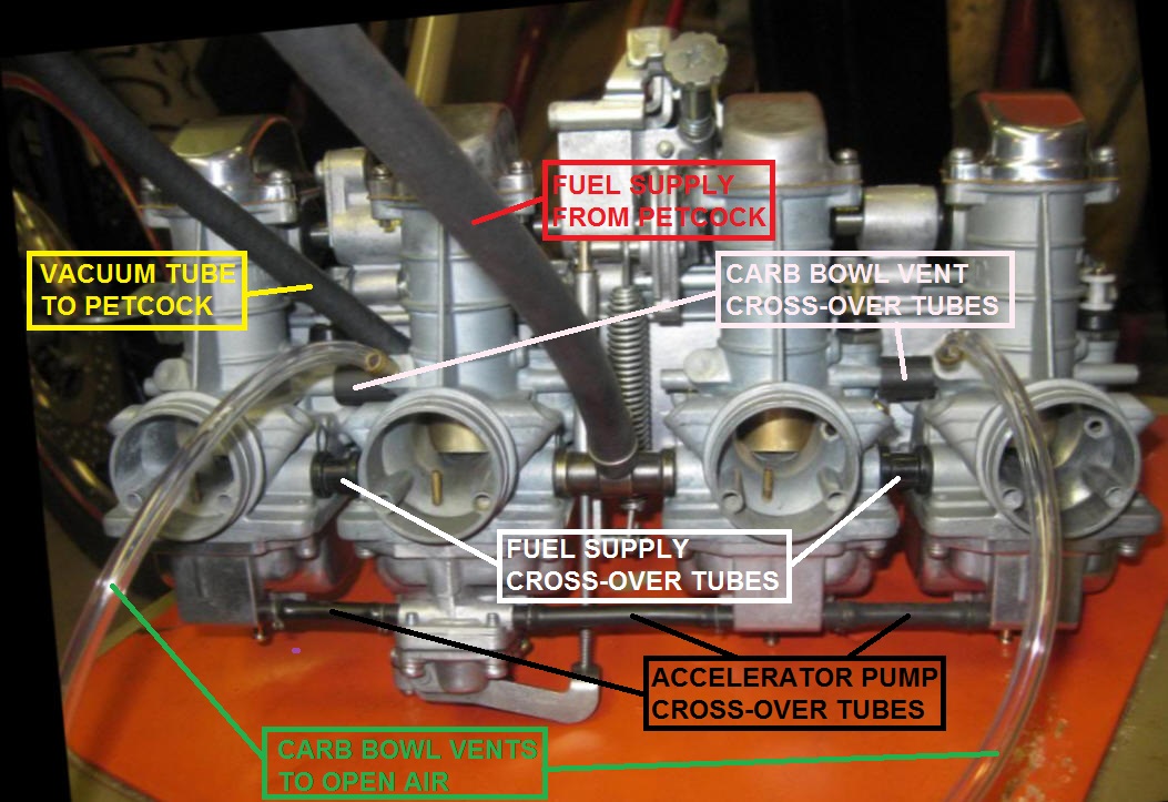 In addition, when disassemble the carbs make sure you keep the float, float needle, and float needle seat for carb #1 together with #1 carb body. Same for the other 3 carbs. Those three items are best keep in the original sets. All the rest of the brass parts can be tossed together and cleaned as a group.