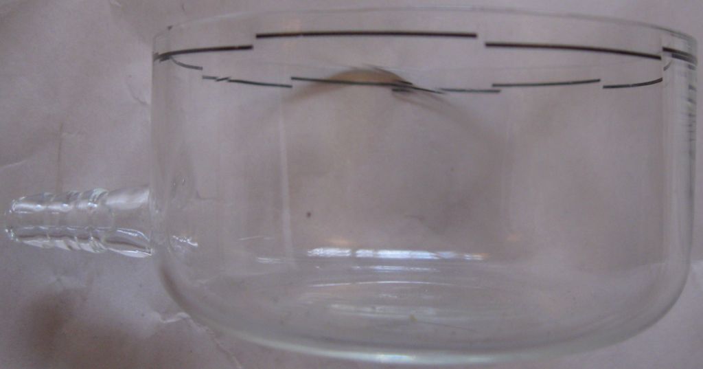 Over the last 6 months, a local custom lab equipment glassblower has produced a handful of dummy 'float bowls' (modified lab beakers) for our testing based on our ongoing specs & suggestions. Here is the first rough prototype from late last year: