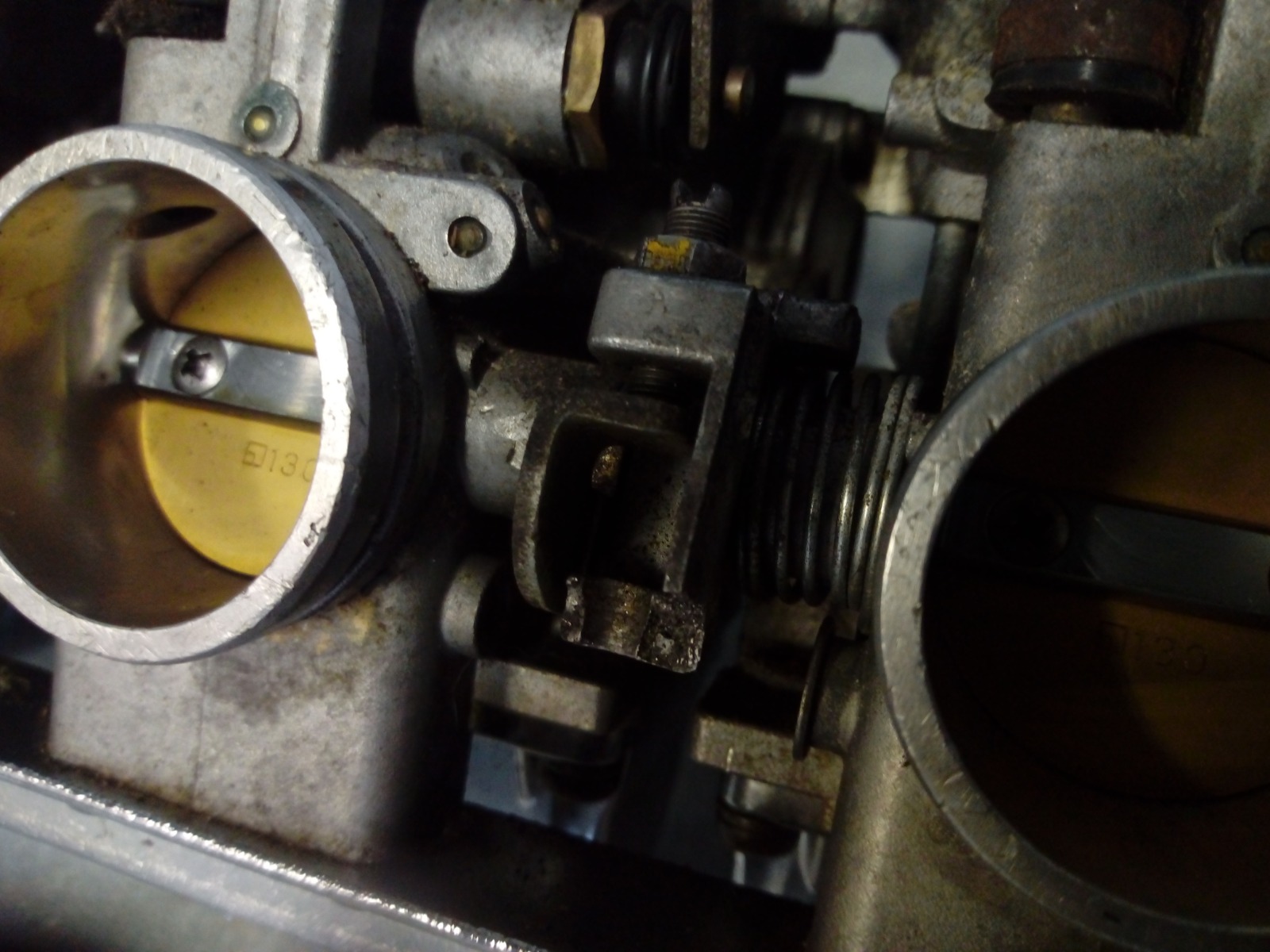 I have taken the carbs off the bike to clean them and when I did I have found that someone has broken the bottom part of the butterfly adjustment housing on carb #1 (see pic). Where might I get this part or would anyone have one on a doner carb they are willing to part company with at a reasonable price?