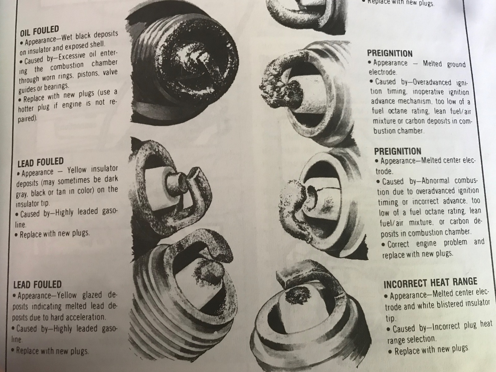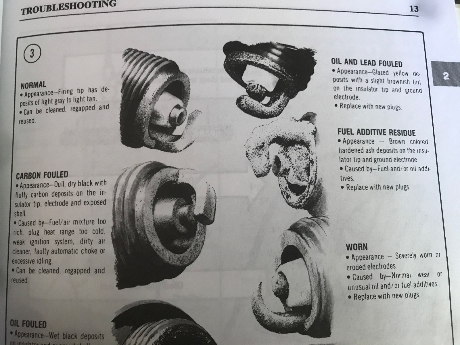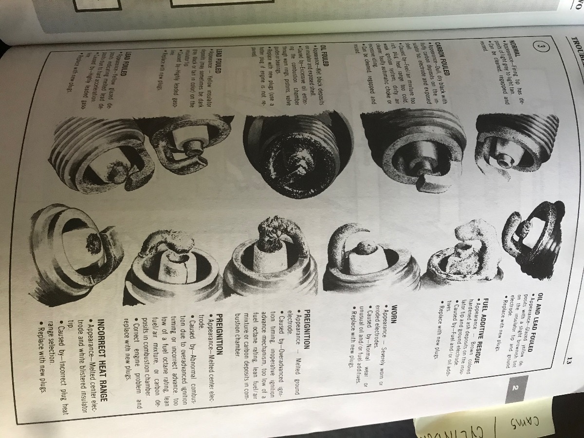 I’m no diagnostic expert, but here’s a couple pictures from a manual for generic spark plug symptoms;
