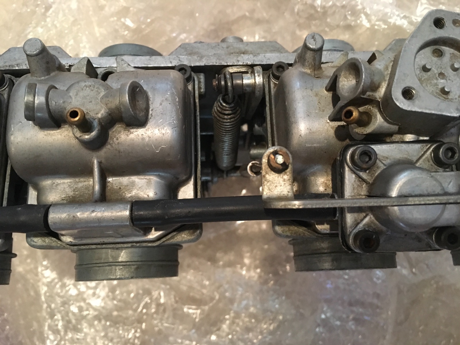 Latest challenge with these carbs, missing the knob on throttle stop screw. Think the knob from most any VM set would work. The search is ON!