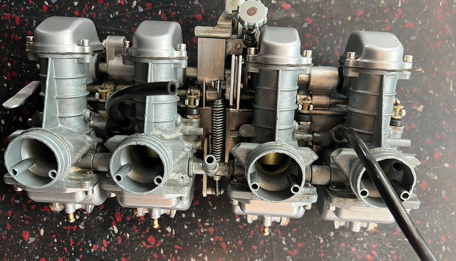 Took of the carbs and noticed the float tabs are bent in uneven degrees.