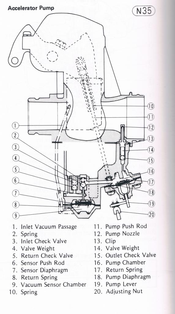 From the pic posted it appears that this set of carbs has both a pump and a sensor. As I understand it one of the things the sensor does is only allow fuel out of the pump if the engine is running (providing vacuum)