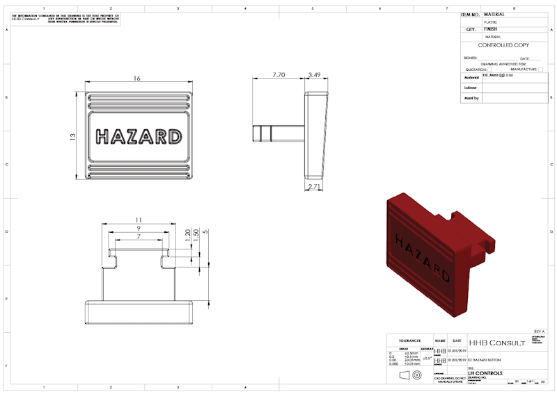 I've drawn the button according to what I see in your pictures, and all dimensions are ASSUMED, for now.