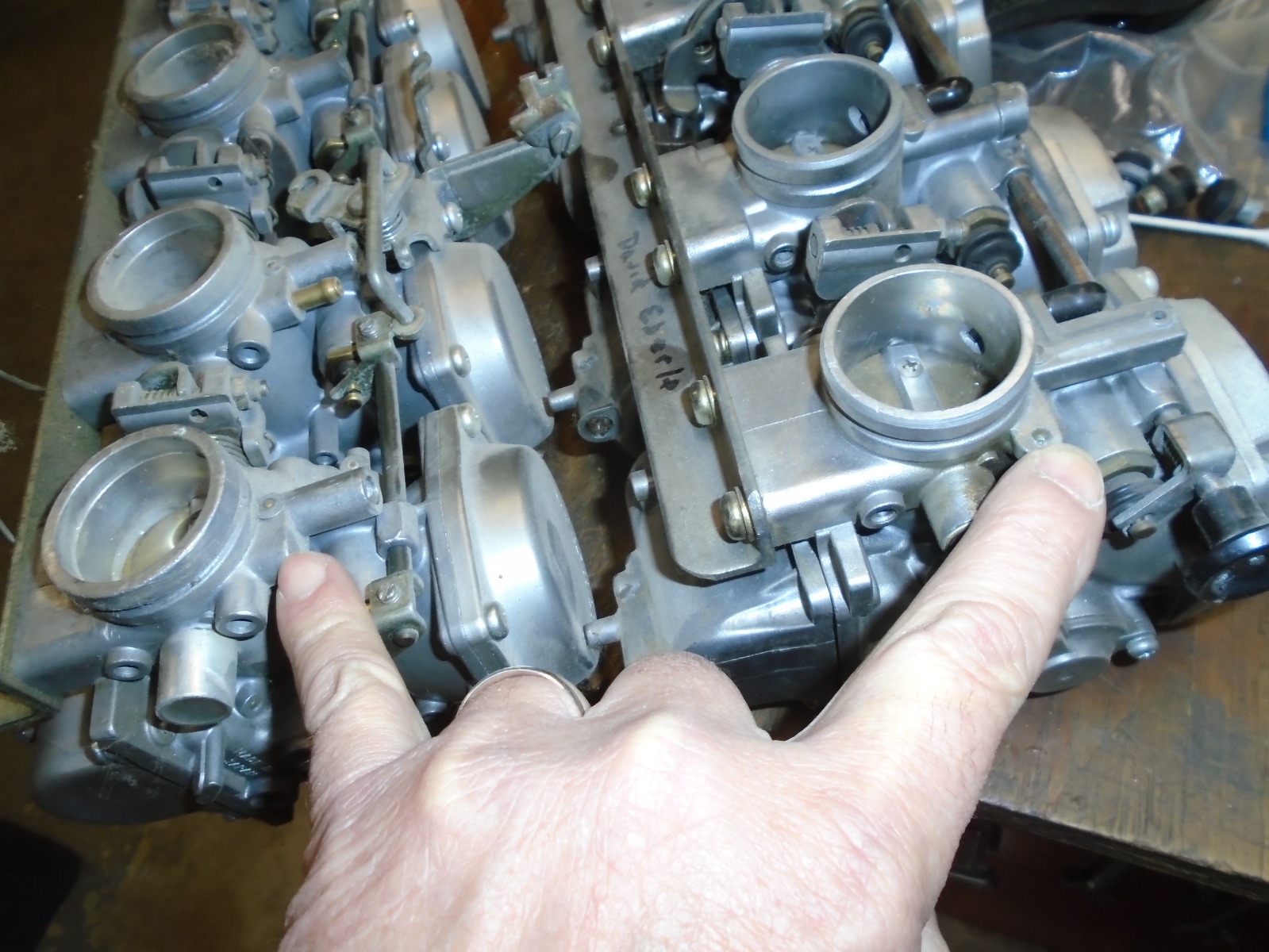 Let's make this easy...with photo differences. Like mentioned, buying on ebay ya gotta know certain perimeters of what is original or touted as such. So.. note the differences between the Suzuki and Kawasaki versions. The Suzuki casting boss's near the pilot fuel screws were not drilled and have a brass fitting barb, only #2, for petcock vacuum. Why, because they had allen screws in the intake port of the head to access sync in the casting. Whereas the Kawaski were drilled and have brass barbs on all of them for sync procedure. Also noteworthy, Yamaha used a similar Mikuni design, also printed on the side but "another bird of various design intents". Second denote of recognition, Suzuki, had a lip of larger milling in the intale side of venturi, see pic.