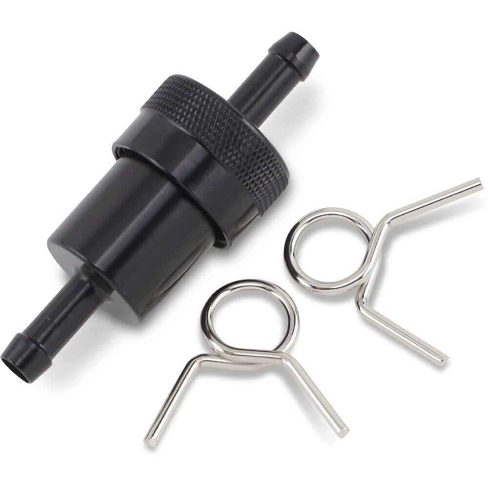 They come in a assortment of anodized colors, 1/4" or 5/16" and have a washable filter element with sturdy O rings to seal it. The price is reasonable (I ditch the clamps)