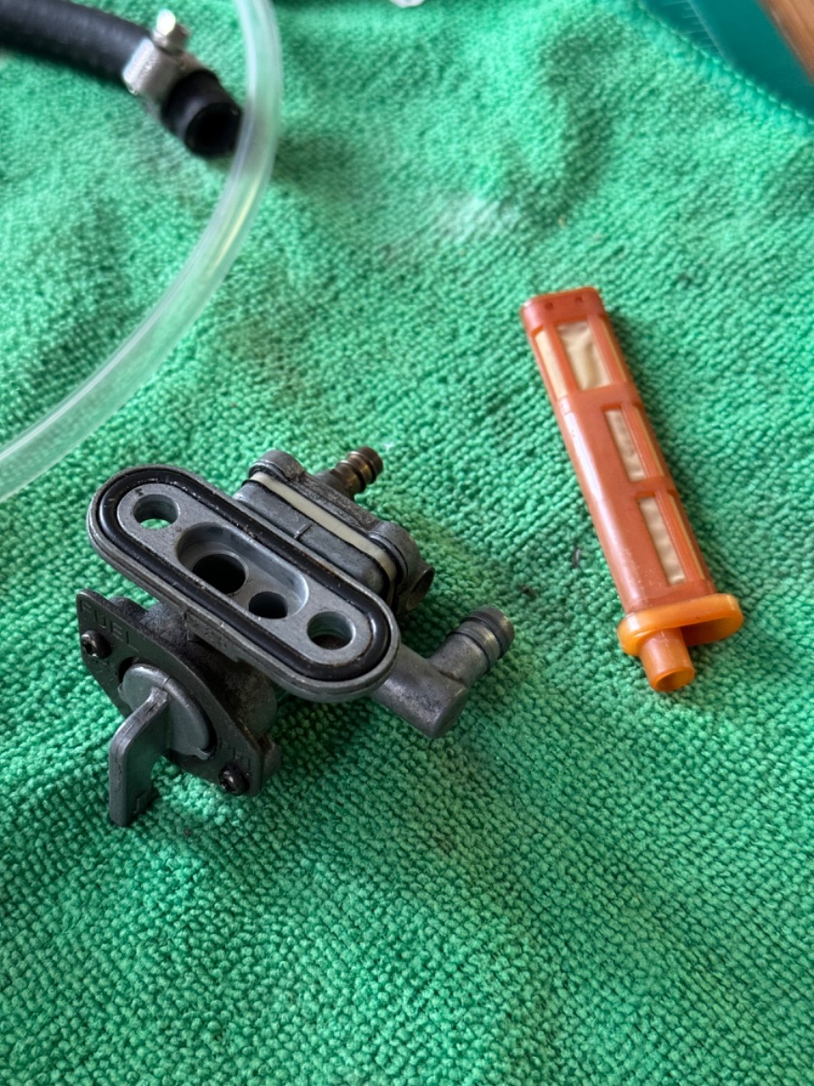 Hi all,It’s been a while, but after life tried to take over, I’m back to rebuilding my Spectre.Decided to pull the petcock for inspection. I’ve never pulled one before and it came out in two parts, with the plastic filter tower separated from the main housing. Is that supposed to happen? I had expected it to be one unit. Is it supposed to be a pressure fit? If so, it’s def too loose.Second, I’m having difficulty identifying it for replacement and/ or rebuild purposes. It reads Taiko Giken on the back and has a small stamp reading Z26 on the flange that meets the tank. I’ll try and get a photo attached below.Thanks in advance for any info. Brion
