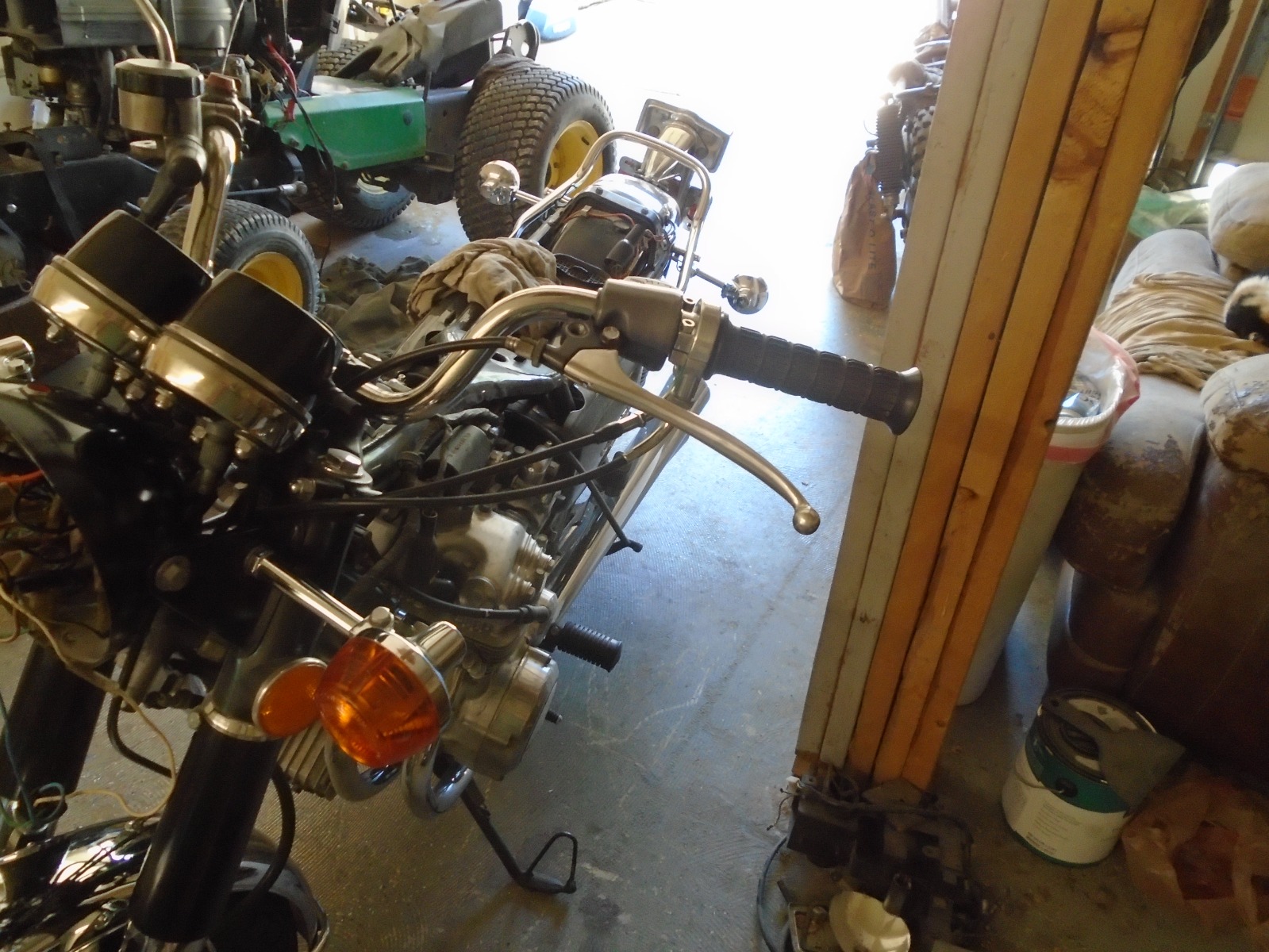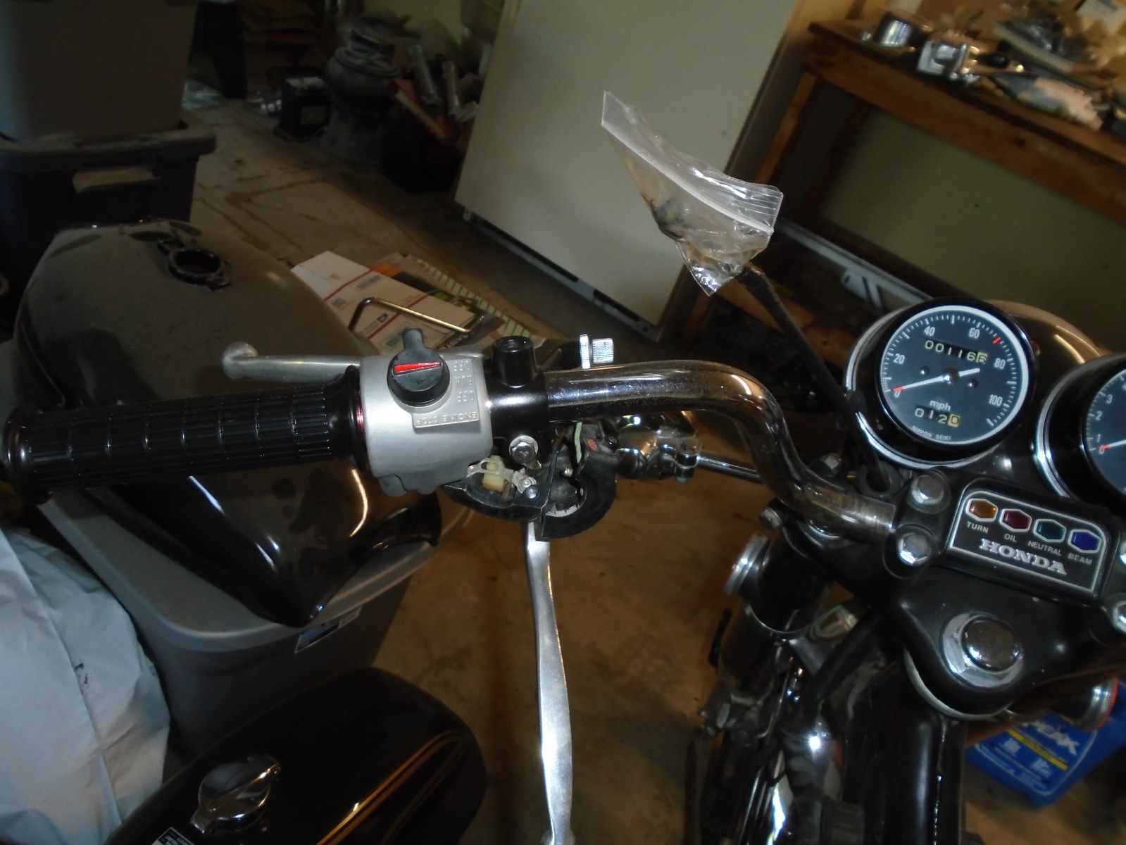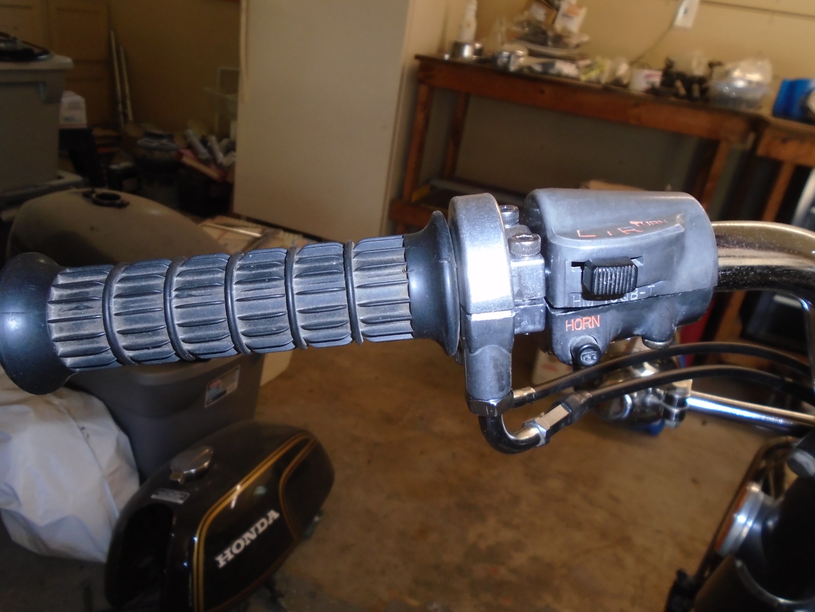 Thanks for the insight fellas!! Don't really want to complicate issues with "foot control" anything. He's been modifying bikes for years to serve his need to ride. Yes Vin, this switchblock does utilize the push/pull setup and they are omnidirectional so i can easily reverse the cable pull. He's familiar with a twist-up to increase speed and has been modifying his collection for years this way. I can mill thru the 180deg out of what we are used to and facilitate the turn signal function again, also the start. He'd brought me a "china" Magura look-alike but these carbs have a pretty stiff return spring, that's why i wanted to add that extra buffer of security uncase something goofy happened. Also the reason for using a quick-kill on that knob top. His singular forearm is about the size of my thigh, ha. And he's a true farmer, changes midsized tractor tires by HIMSELF!!