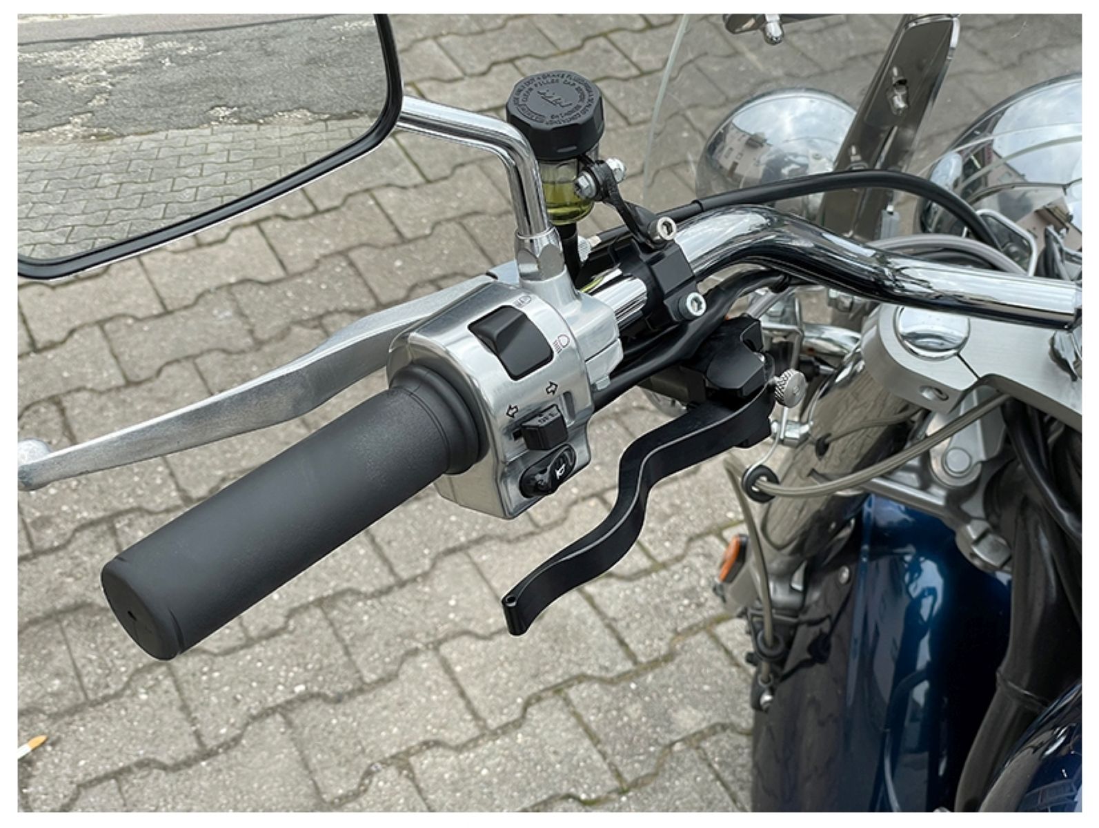 I've been trying to figure out a similar mod to this for a while. My old.man has no fingers on his right hand (pinky's still there, but no tendons and hence no movement). He could still work a twist throttle on the right though, so all of my ideas were about brake/clutch mods for the left hand.