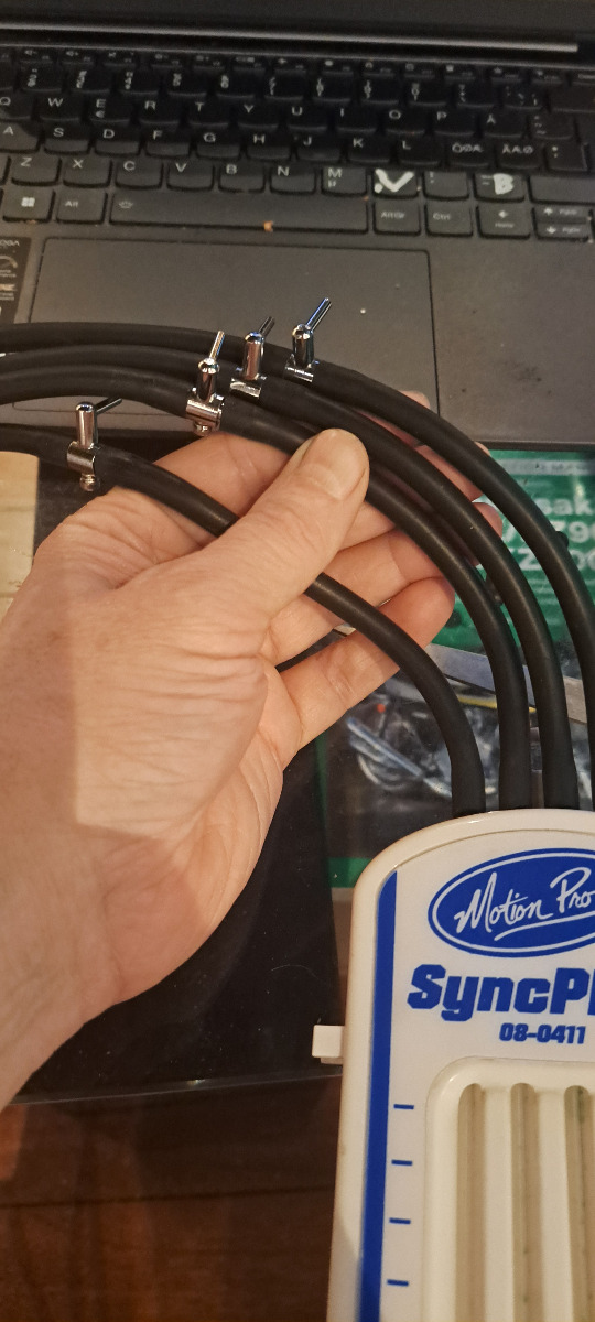 26 May 2024 07:15 - 26 May 2024 07:19Yes that is how i have synched the tool before the tool has a 5 pin connector and the fifth pin is for the hose to synch the tool.but today i just connected one hose to sync the tool. and adjusted the airvalve so the fluid stopped rising so it did not get sucked out.Then i moved the hose to the other carbs and checked if they was at same level .I think i will try the way you described using the airvalves to synch the toolAlso, the valves you installed are another variable. To be sure they are not giving you different readings, I think it would be best to connect all four lines to a single vacuum source and adjust the valves so that each tube reads the same. Then do not touch the valves again.