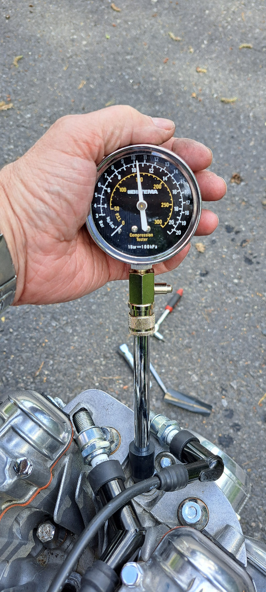 Today i did a new attemt to get the carbs syncronized. Today i had more tools .First checked if there was any airleak at the rubber boots on both sides of the carbs sprayed with starter fluid around the boots.No difference in idle speed so that was good no leaks. Then checked the compression to se if valves are okay.
