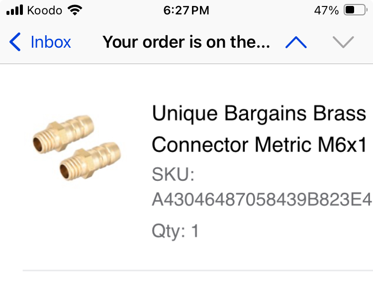 Thank youuu, I bought from Waltmart Canada 2 m6 hose fittings for 10$