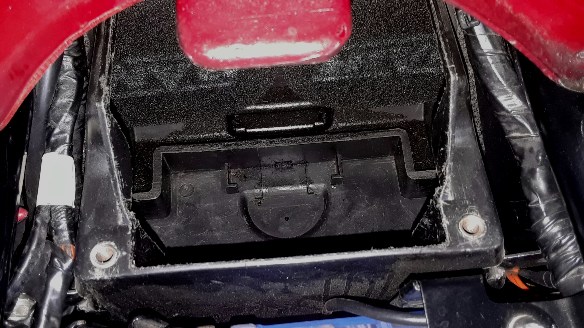 The space beneath the breather cover is clean also, and has no filter element installed...
