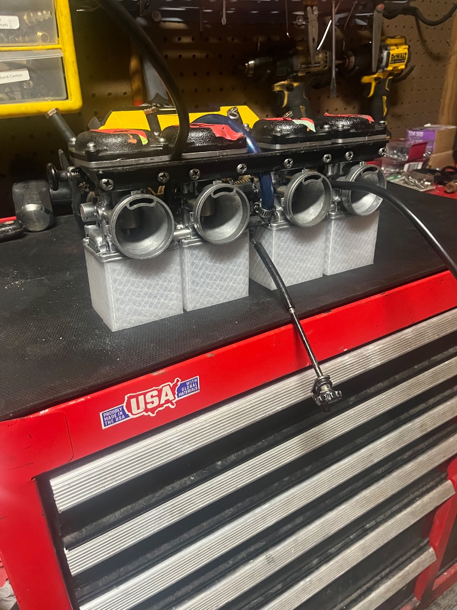 After frustration with air bubbles and inconsistent fuel level measurements using the clear tube method and inspiration by a guy named ADV rider on YouTube I decided to try to 3D print some bowls for checking fuel level measurements. Good way to check fuel flow as well. I spray them with clear coat and they have held up well. Apologize for the quality of the pictures. Maybe I’ll try to get new ones.