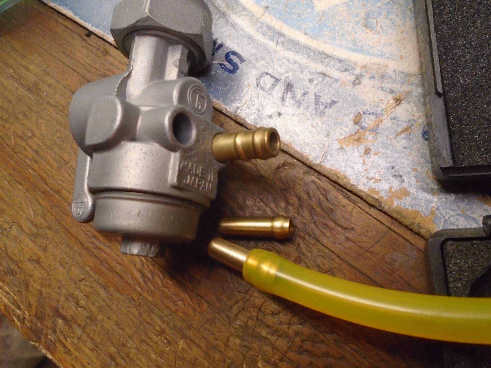 You have the smaller size, 5.5 X 6.4ishmm. A couple companies dominated the Petcock market back then, Mikuni or Taiyo Giken as supplied thru various brands. I'm betting you have the TG product. Ed is Correct for the Suzuki Hose but it only fits the Larger 7mm style barbs. If you're not concerned with a splash of color, use 1/4' Tygon fuel line. Readily available at "most" hardware/lawn mower shops. Like the hose Ed mentioned and original, it's thin-walled so assembly won't be a fight. It also is a friction fit but would suggest some sort of clamp. Tygon shrinks as it ages, contrary to what most person's don't care to admit. A couple of pictures to help you distinguish the difference, Have Fun!