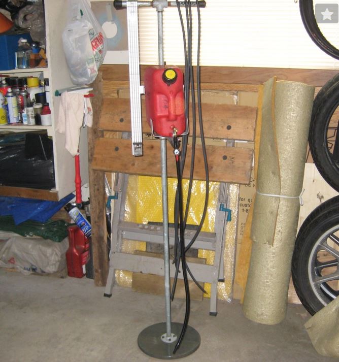 I made up this little 1 gallon auxiliary tank stand about 10 years ago with stuff I had lying around the garage, other than the shutoff valve it was free.