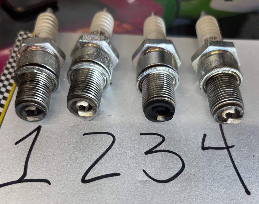 Brought it back in and pulled the carbs back off. Installed new manifolds and new vent tubes on the carbs. Pulled a spark plug from # 1 and it's a beautiful brown.